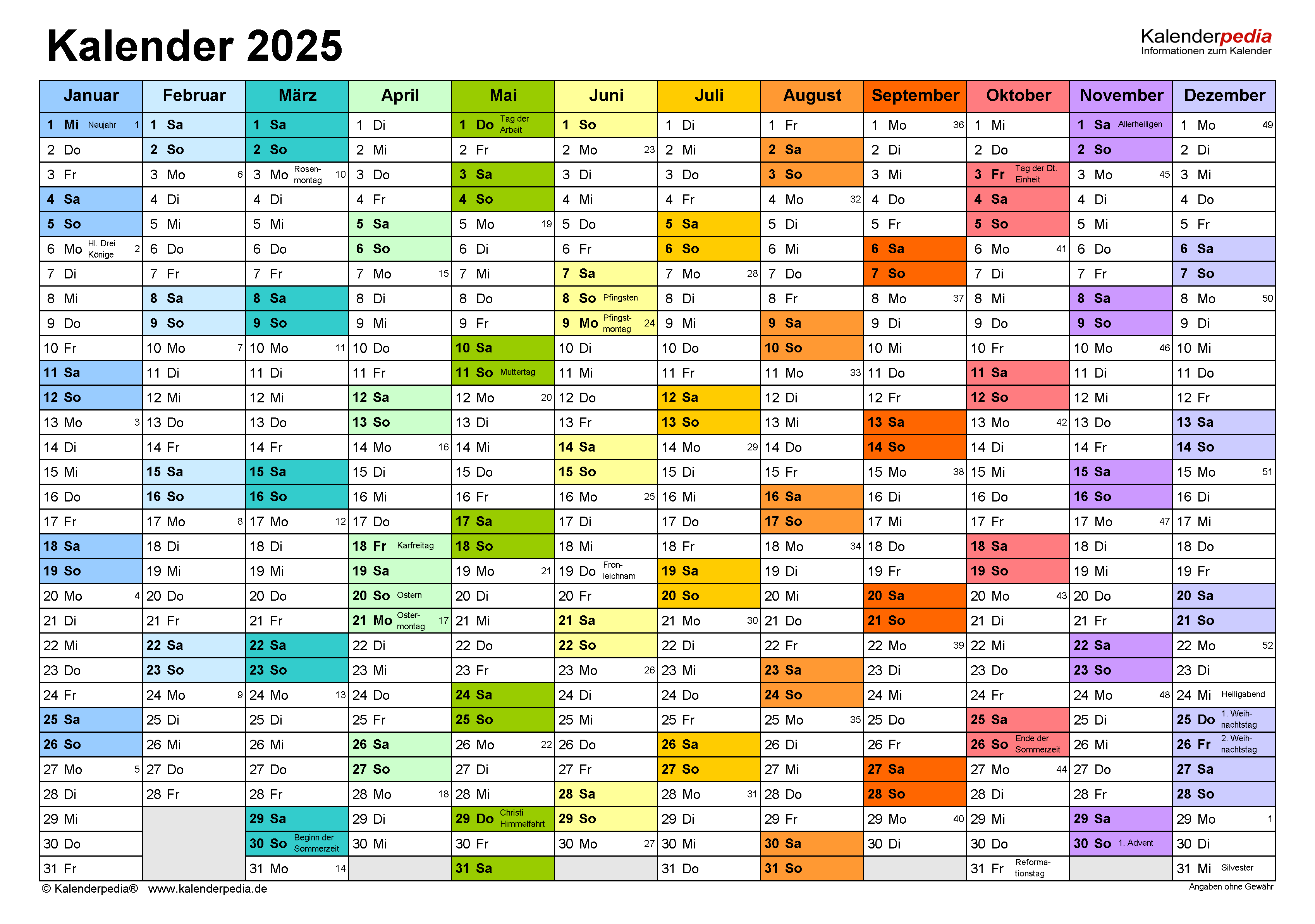 Unser Ferienkalender Bayern 2025 zum Ausdrucken bietet: